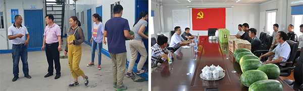 進入盛夏,高溫炙烤,暑氣逼人,尤其是入伏以來,氣溫更是居高不下,為確保施工現場安全生產,保障一線管理人員及工人的人身安全和身體健康,7月13日至23日,公司領導班子全體成員組成八個慰問組奔赴濟南、青島、濰坊、德州、濟寧、鄭州等多個地市的22個項目部,開展了以“情系一線 夏送清涼”為主題的慰問活動。